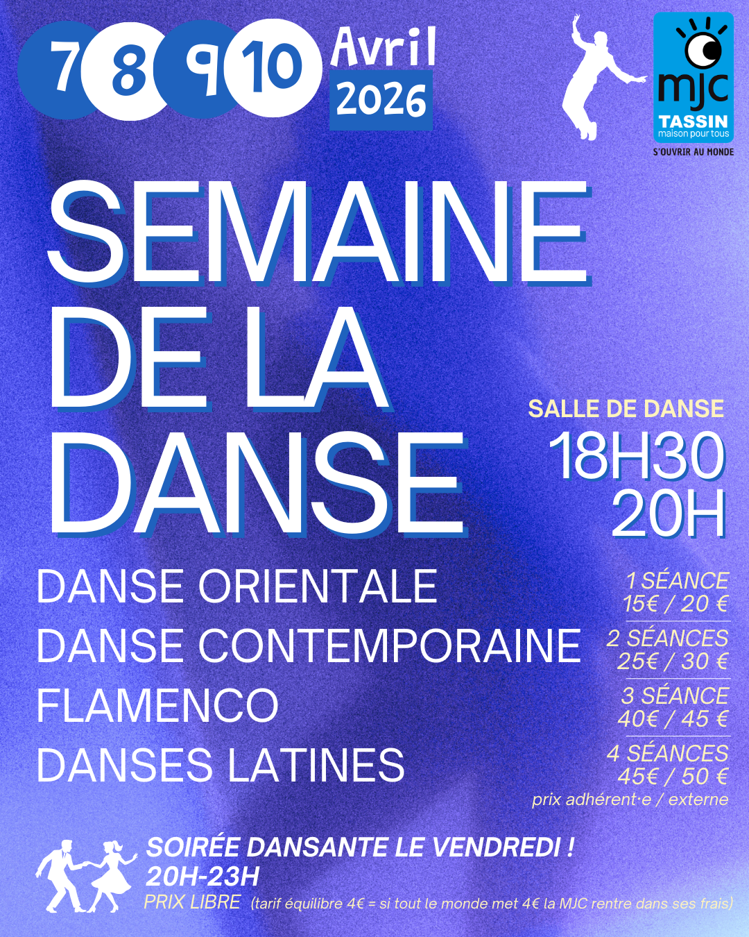 Plongez dans l’univers de la danse sous toutes ses formes ! Danse orientale, contemporaine, flamenco ou danses latines : chaque discipline vous invite à explorer le mouvement, l’expression et les émotions ! À vous de choisir !